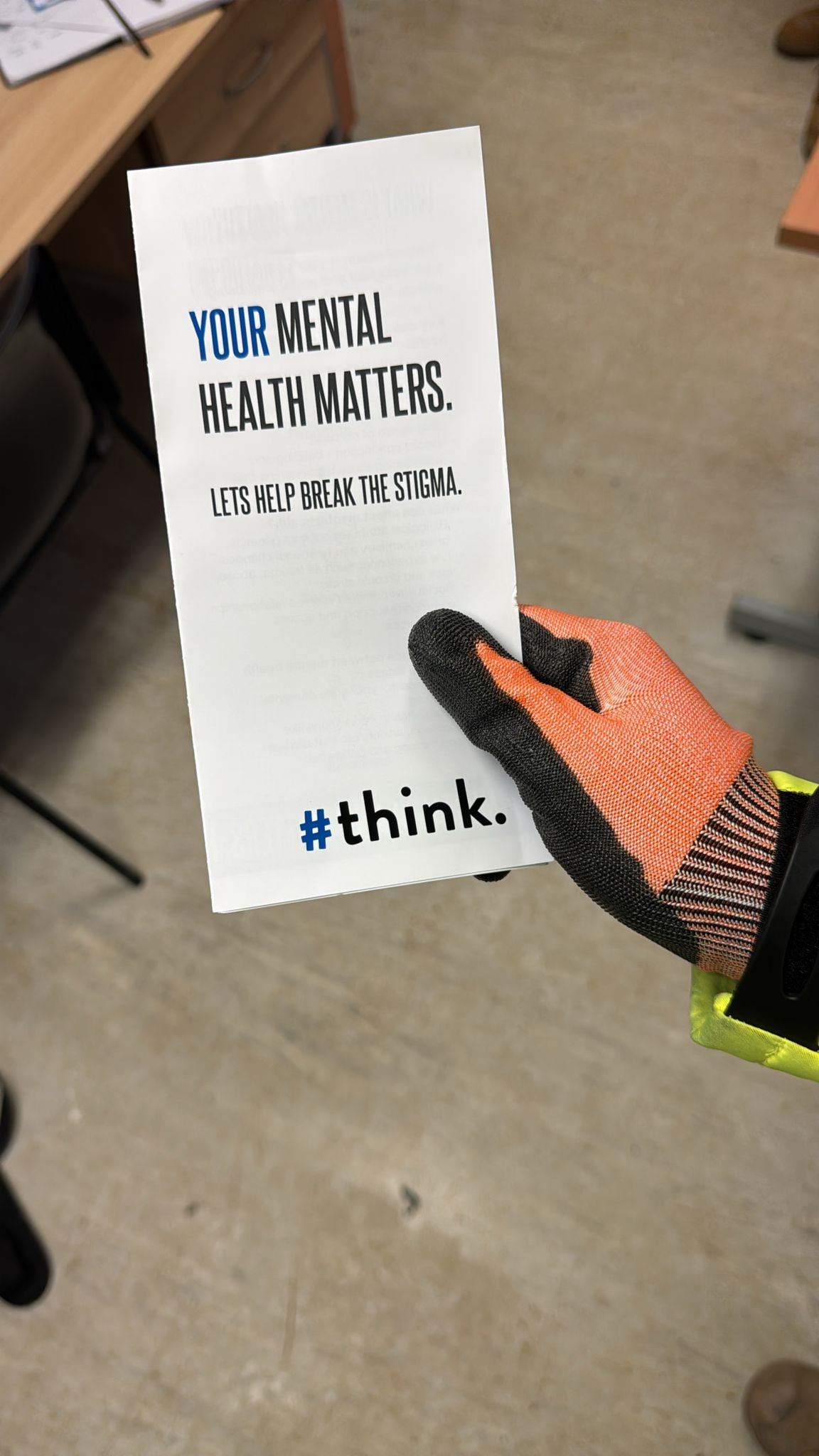 Leaflets are a start but embedding cultural change requires consistent, visible conversation. Think Access Group took their mental health initiative a step further with a formal Toolbox Talk on Mental Health Awareness, delivered to all site staff.