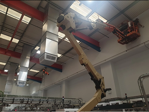 Utilising both MEWP and IRATA Rope Access means we were able to complete this project with very little disruption to the machinery within the building thus meaning this factory could be back operational as quickly as possible.