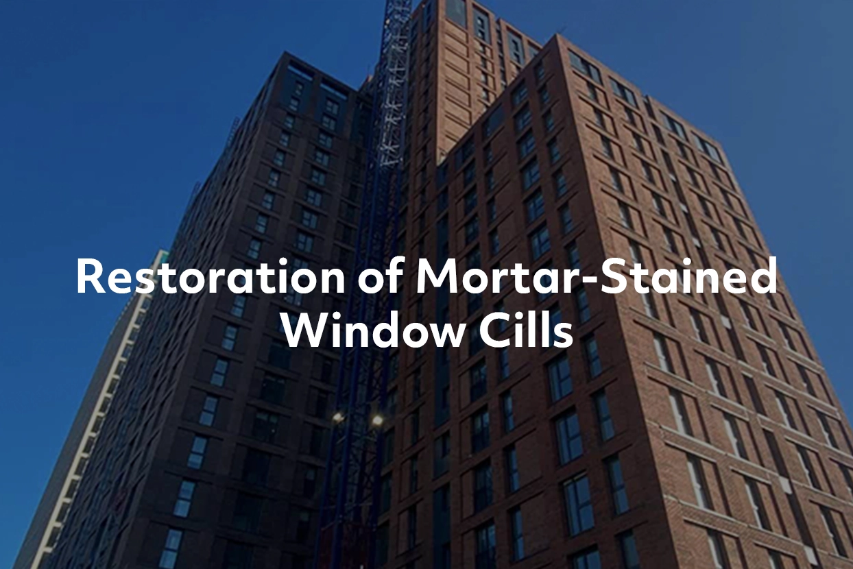 The cills had been affected by mortar stains from previous construction work.The client required a cost-effective and high-quality solution to stain remove, prepare, and finish the cills whilst overcoming environmental and access challenges.