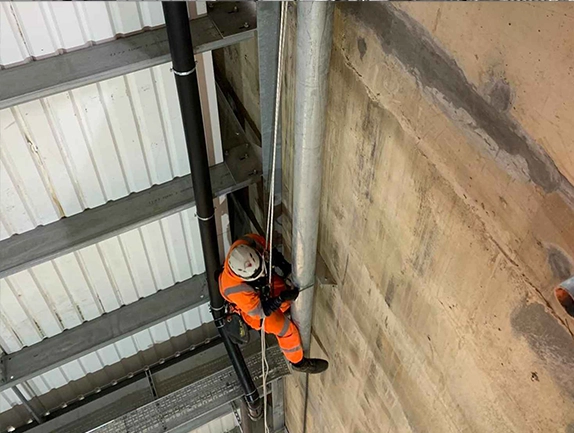 A 4-man multi-skilled rope access team was assembled, alongside a qualified team of pipe fitters and installers.