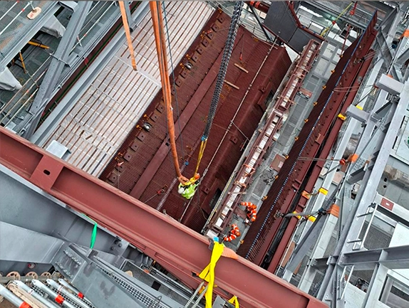 To address these challenges, the project team deployed a skilled team of rope access-trained steel erectors, working in conjunction with experienced riggers and slingers. This collaborative approach combined specialised skills and equipment, allowing for efficient steel erection in this challenging environment. The key elements of the solution included: