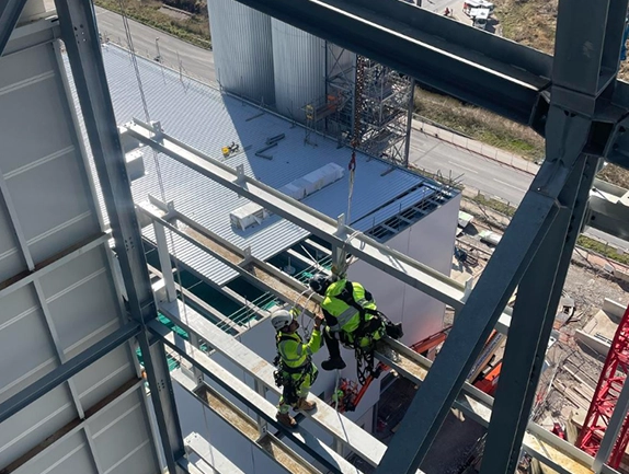 The management team and rope access supervisors carried out an extensive survey of the EFW plant site. The plant’s large structure and the location of steel supports meant that certain areas were inaccessible via traditional scaffolding or cranes. This reinforced the need for rope access techniques for steel erection, especially in high or confined areas.