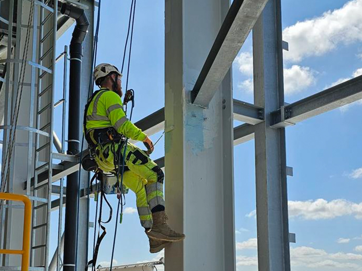 A specialist steel contractor engaged Think Access to provide rope‑access support across multiple phases of work at a large energy‑from‑waste construction project in south‑east London. The scope evolved over time, covering steel connection torquing on the first visit and then returning on subsequent mobilisations to carry out galvanising spray treatment and painting of structural steelwork and lifting beams within the waste bunker. All works were controlled through the GetKonnected digital platform and signed off by the site representative on each day of attendance.