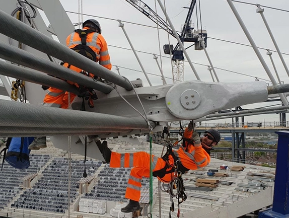 The construction of Tottenham Hotspur Football Club’s new stadium presented numerous engineering challenges, particularly in the erection and subsequent removal of temporary structural supports. Think Access was engaged by the main on-site steel erection contractor to undertake the critical task of removing massive temporary stay jacks from the stadium’s roof structure.