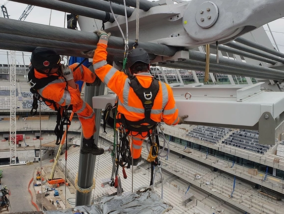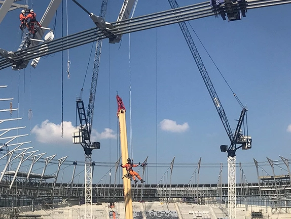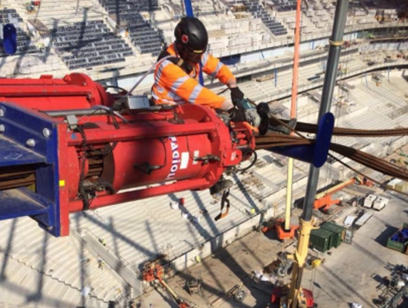 The primary objective was the safe and efficient removal of the temporary stay jacks located at high elevations on the stadium’s roof. This process involved