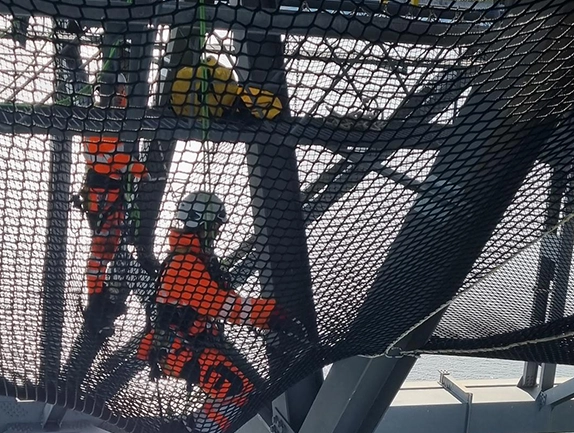 - Hoisting, tensioning, and stitching netting panels to achieve continuous, high-strength coverage.