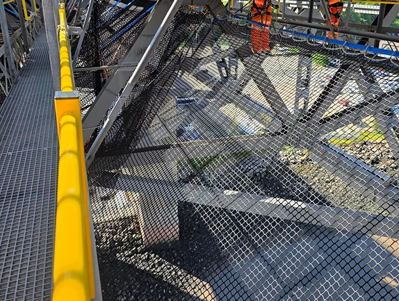 The project involved installing debris netting across panel points 5–6 and adjoining spans of the bridge deck. The scope included: