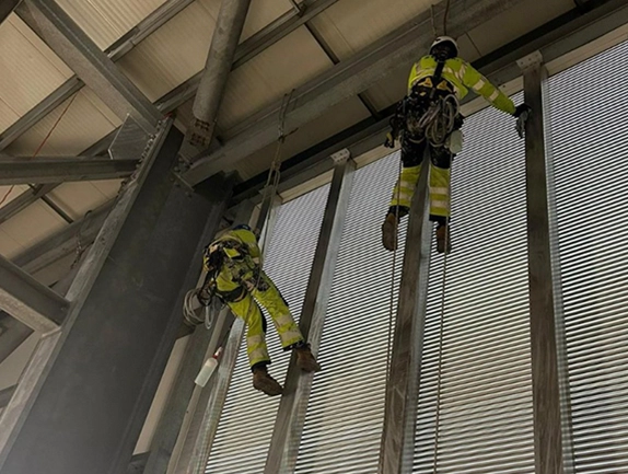 External Window Cleaning: The removal of protective stickers from the windows using onsite Man Baskets. This approach ensured that the cleaning personnel could access the windows safely and efficiently.