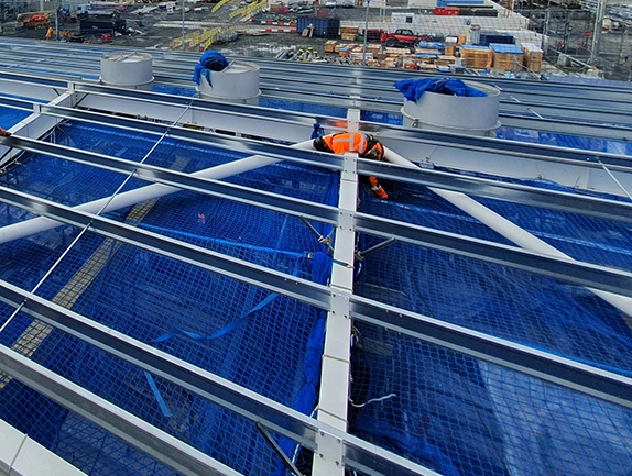 Having identified an access issue with standard mansafe Safety Netting (obstructions close to the works area) and needing access to steelwork #thinkaccess were employed to install both Safety Netting and ‘Tensioned Access Platform’ netting to the structure, as well as temporary Edge Protection complying to EN13374 and an access Stair Tower.